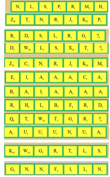 IL y a quelques jours j'ai fait des copies de mes tirages lorsque je jouais avec ICECREAM 2 et que j'étais aux environs de 9800 de pm. Malgré ces tirages difficiles, je suis arrivée aux 9990. je redémarre un nouveau pseudo ICECREAM 3 , et je fais de nouveau des copies des mes tirages lors des 3 ers jours d'utilisation de ce nouveau pseudo....c'est encore pire, donc quelque soit le niveau où l'on se trouve, on a des tirages vraiment bien pourris. ça fait quelques années que je joue sur ce site, et je n'avais jamais autant eu de mauvais tirages, que depuis ces derniers mois. je changeais peu mes lettres, ben là, pas là choix, je ne peux pas jouer...